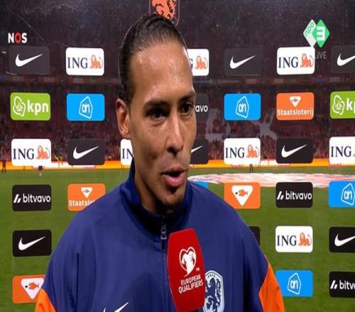 世界杯欧洲区预选赛第一阶段第8轮,荷兰主场4-0大胜芬兰。赛后,收获进球的队长范戴克接受了NOS的采访。