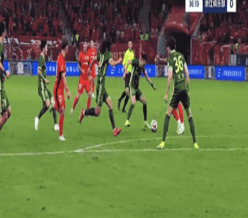 连续两轮中超,海港都率先破门,同样是连续两轮,浙江队都送上乌龙球。比分领先后,海港继续全线压上,浙江队踢得相当被动,几乎很难进攻到海港的30米区域。