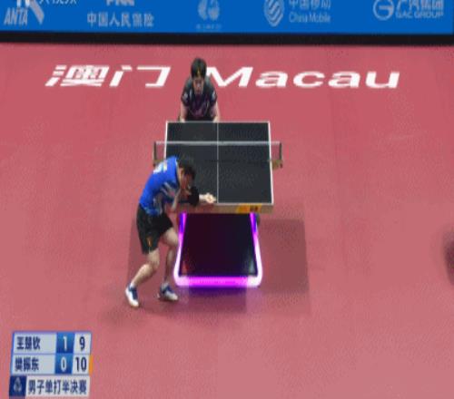 后面被王楚钦连续两个倒地爆冲(上台一个被防回去一个)之后,樊振东变了一个长球,又被王楚钦直接侧身得分。