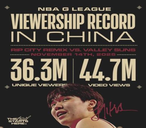 今天,开拓者与NBA发展联盟的撕裂之城混音进行了联合官宣:11月15日的杨瀚森NBA发展联盟首秀,也就是混音对阵山谷太阳的比赛,已经创下了该联赛在中国大陆地区的收视纪录。