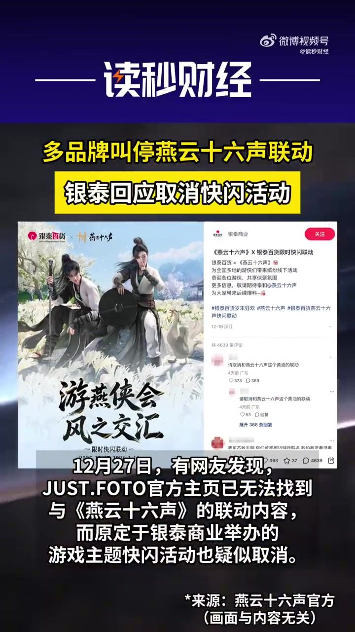 直播吧12月30报道12月27日,有网友发现,JUST.FOTO官方主页已无法找到与《燕云十六声》的联动内容,而原定于银泰商业举办的游戏主题快闪活动也疑似取消。此前,游戏《燕云十六声》因周年庆时装“飞白成诗”陷入争议,该时装被部分玩家质疑存在软色情设计倾向,涉及未成年角色,引发舆论关注。