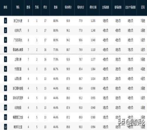 CBA最新排名:广厦7连胜重返榜首山西主场爆冷4连败四川0胜9负