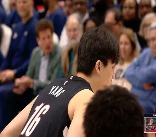 首节还剩4分钟,小杨提前替补上场,搭档罗威双塔出战。