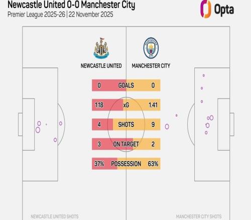 纽卡和曼城上半场浪费7次绝佳机会,创英超1011赛季以来纪录